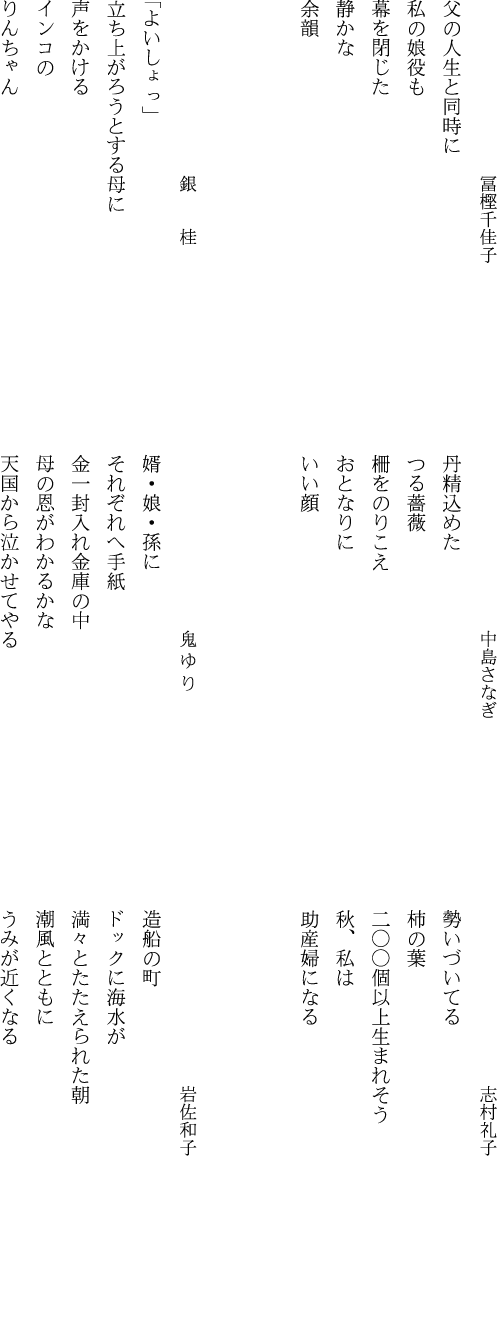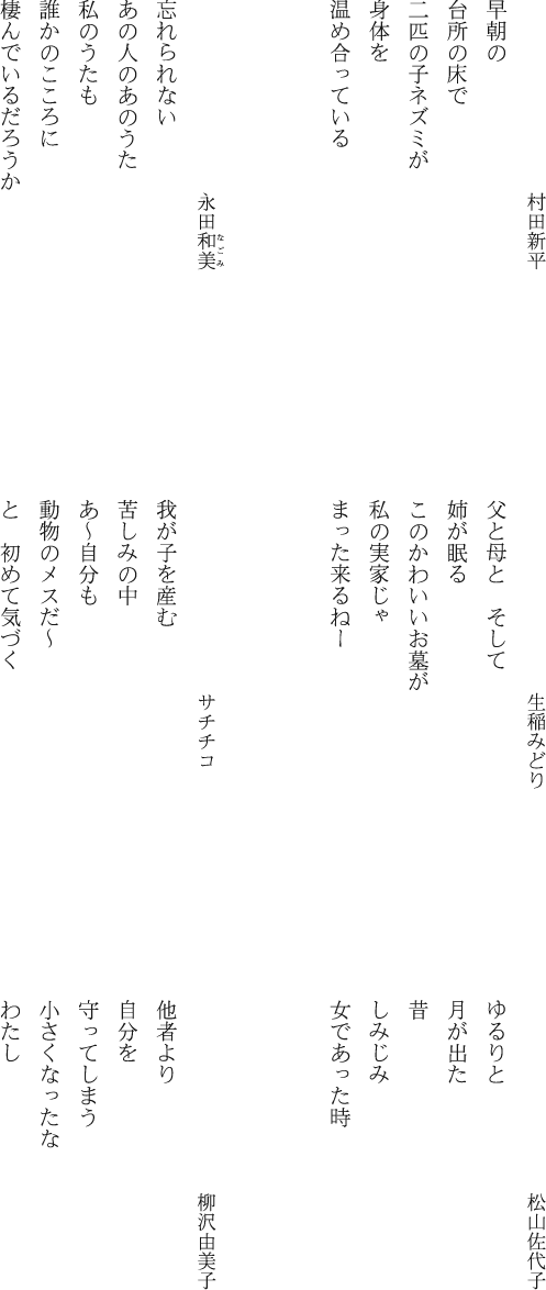◆過去の「毎月の五行歌12選」
