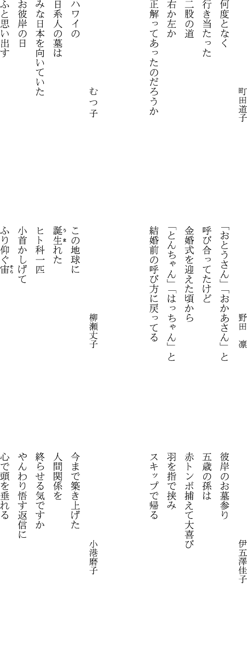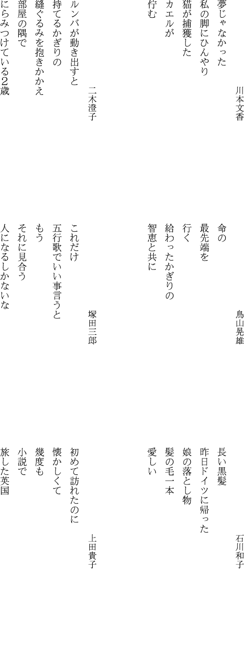 ◆過去の「毎月の五行歌12選」